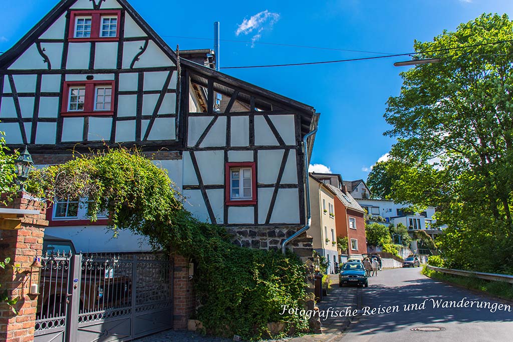 Während ich so dahin ziehe, erhalte ich Blick auf das Landhaus der Burg Dattenberg, das im Vorburgbereich der verfallenen Burg errichtet wurde und 1890 zu dieser schlossähnlichen Villa aufgehübscht wurde.