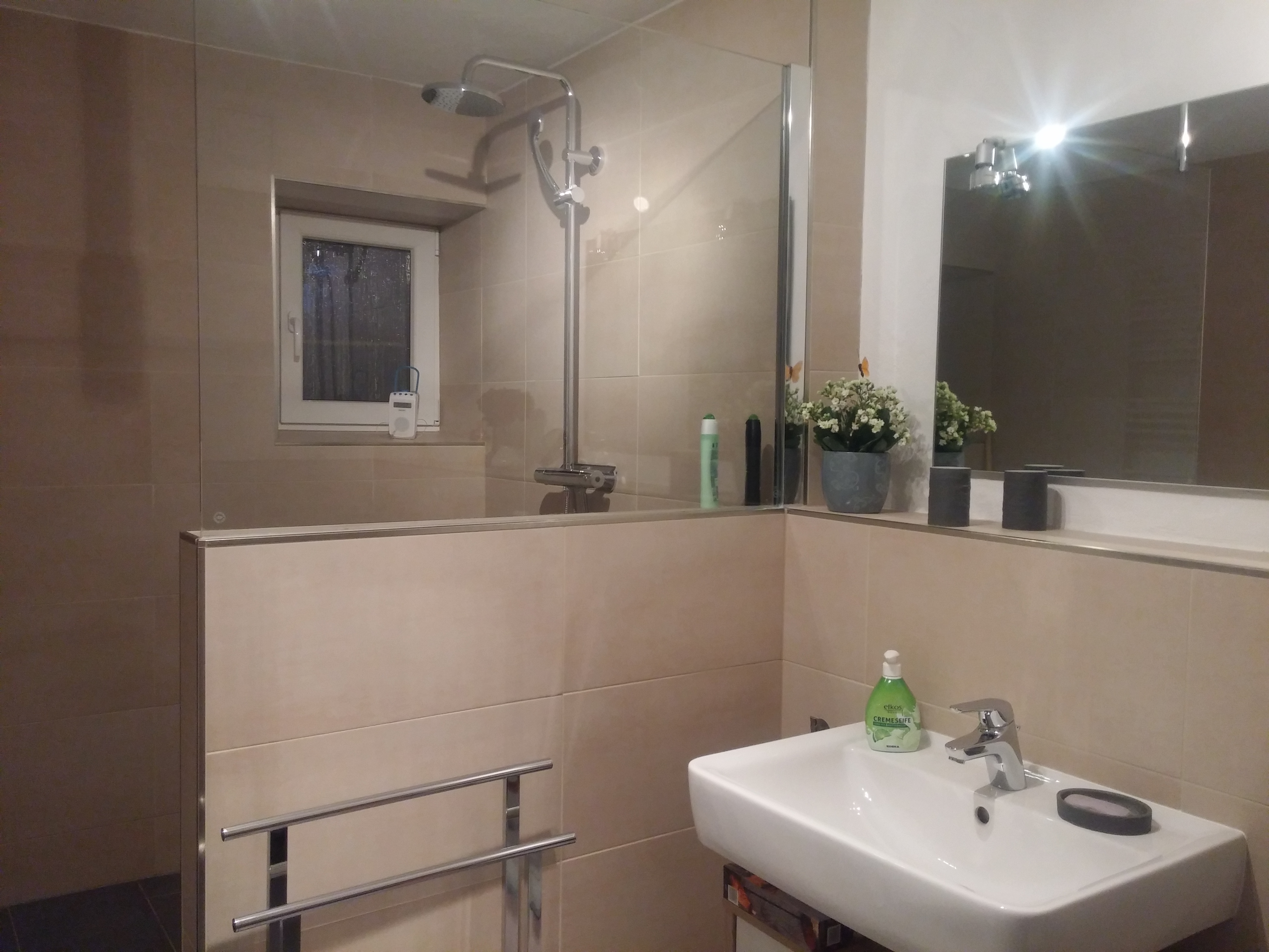 Die Gastgeberin, wie einigten uns fix auf ein freundschaftliches „Du“ empfängt uns freudestrahlend, zeigt uns die Wohnung und den Garten. Sie verweist Spike auf eine kleine Türe Leckerchen, die er sofort leert. Hundedecken, Handtücher, Futter- und Wassernapf, alles steht für ihn bereit.